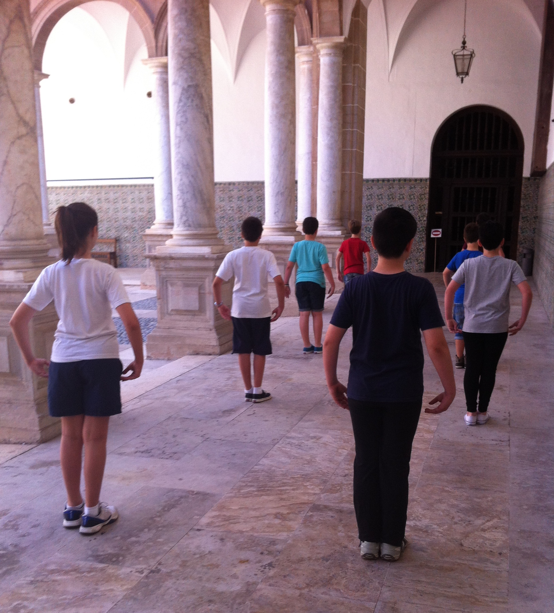 El murmullo se extingue lentamente al asomar por la puerta la cruz procesional … Va a empezar la primera danza del claustro.