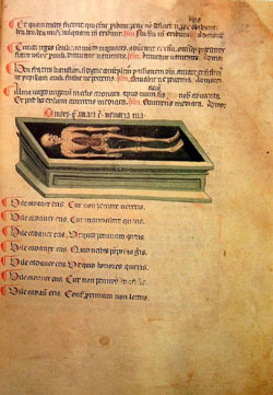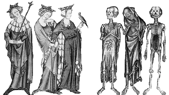 Pero, como decíamos, es este canto sobre la muerte el que nos atrae con más atención, pues está en concordancia con el tema de las Danzas de la Muerte, desarrolladas sobre todo alrededor del siglo XIV en la literatura europea.