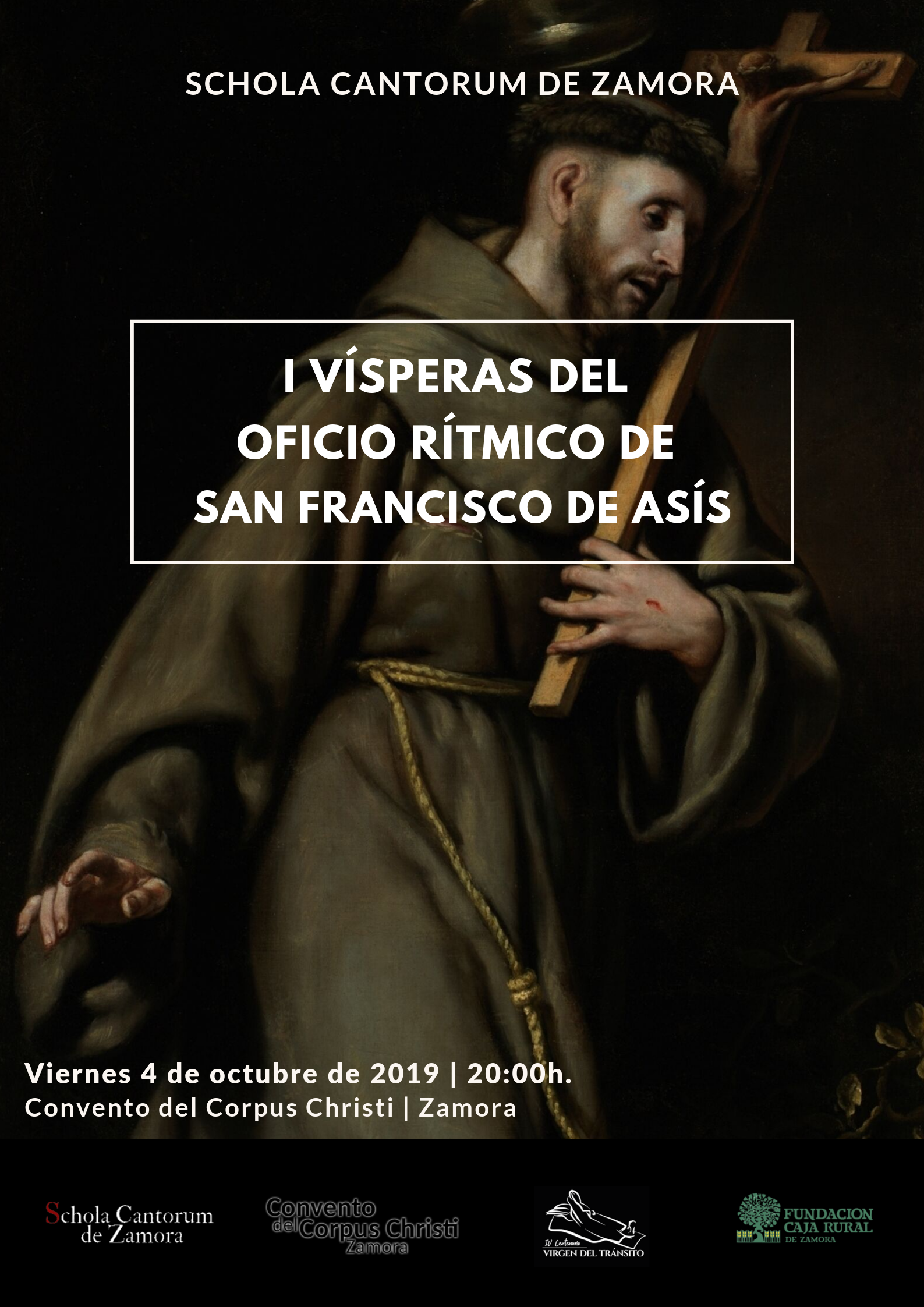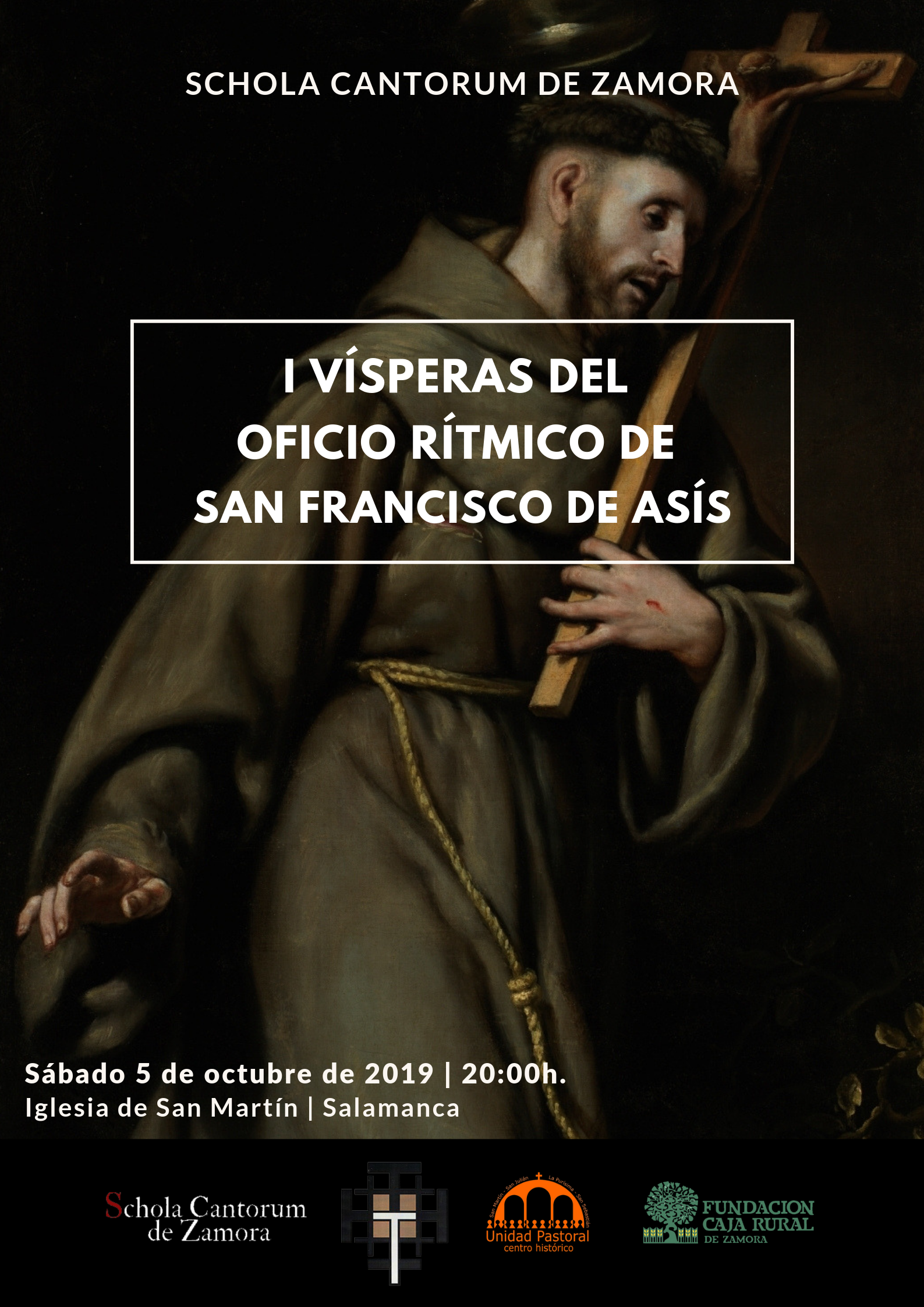 Los próximos días 4 y 5 de octubre, en Zamora y Salamanca, la Schola Cantorum de Zamora, que se estrenó recientemente cantando la Misa de la Dedicación de la Catedral de Zamora, interpretará las primeras vísperas del oficio rítmico de San Francisco, cuyos textos reflejan un resumen de la vida del santo, que será detallada a través de las antífonas, responsorios e himnos de las demás horas del oficio divino. Se trata, en definitiva, de conocer la vida de San Francisco de Asís a través de la liturgia cantada, en este caso llevada a concierto.