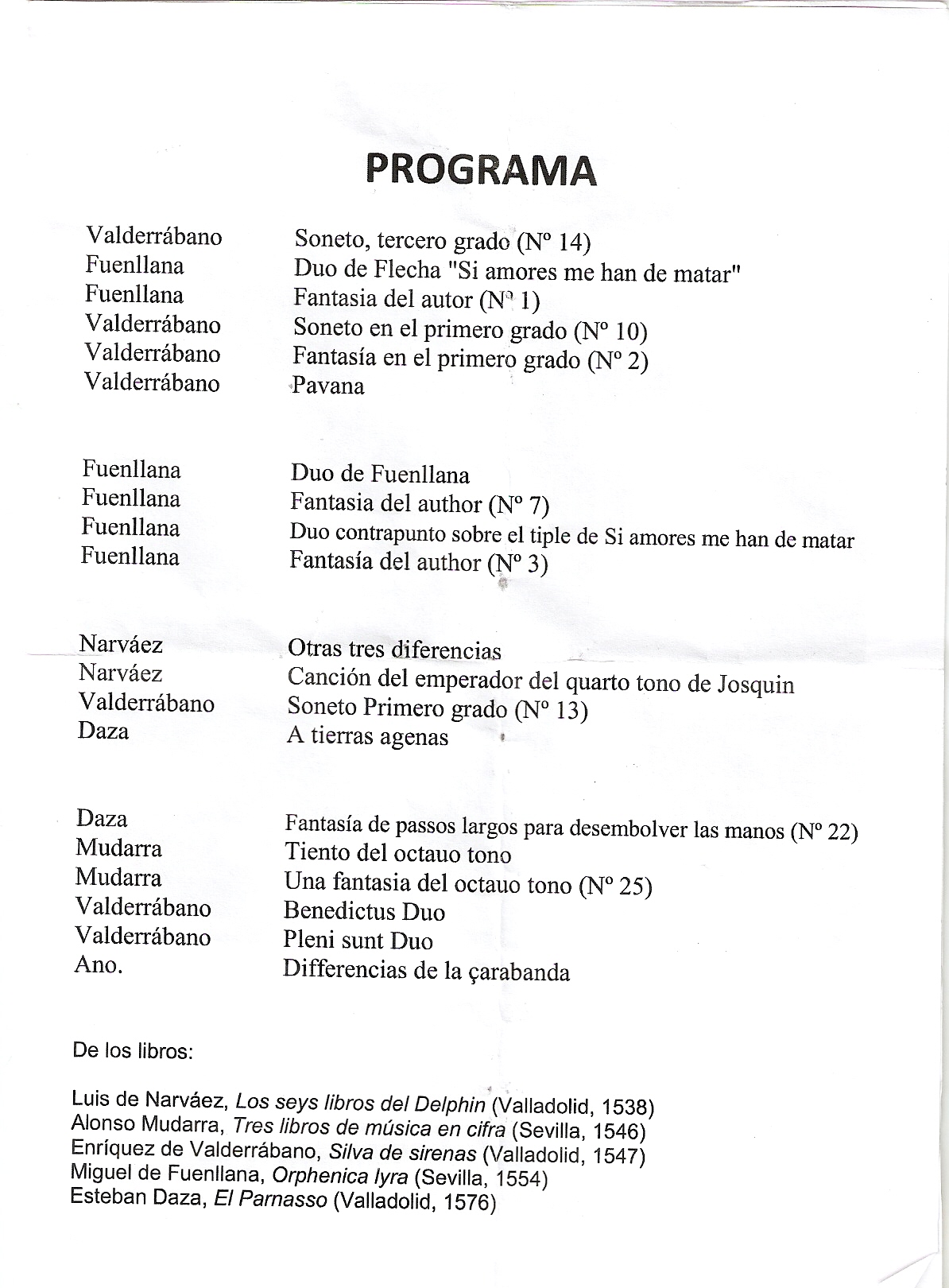 En resumen, podemos decir que constituyó una grata y didáctica velada en torno a la música antigua. Poquito a poco vamos aprendiendo. Os dejo a continuación el programa que interpretó.