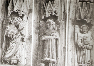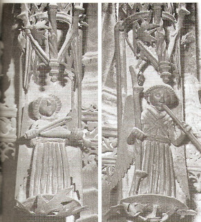 en uno de los porticos de la catedral de Palma de Mallorca los instrumentos estan tan bien representados en piedra que antaño les ponían cuerdas para completar el realismo conseguido por el escultor. (fuente IB3)
