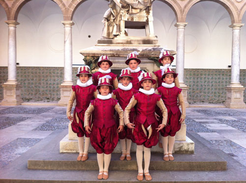 Sin duda. El trabajo ha sido arduo en ese sentido ya que se ha intentado diseñar el modelo de traje que más se aproximase al de los pajes de la corte de los austrias de principios del XVII. Por suerte, en un Museo de Londres existían patrones de corte y confección de la época, que se asemejan mucho a lo que buscábamos. Así, la indumentaria de los infantillos se ha realizado con fidelidad a la época. Las telas y los bordados de los trajes son de mucha calidad, cual corresponde a la magnificencia de la fiesta para la que eran usados.
