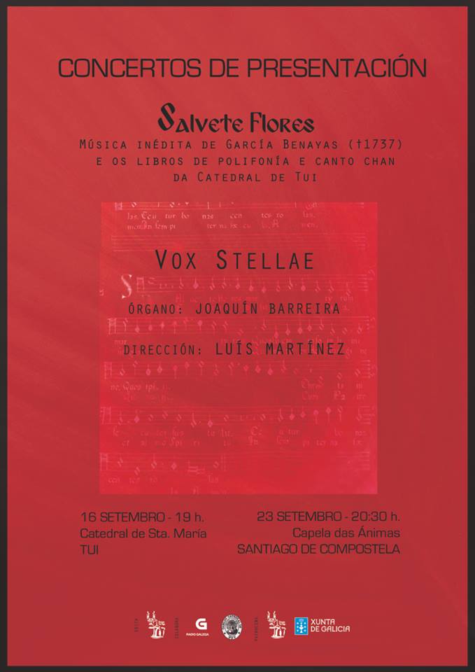 Vox Stellae presenta el CD «Salvete Flores», con música del maestro de la catedral de Tui García Benayas (+1737)